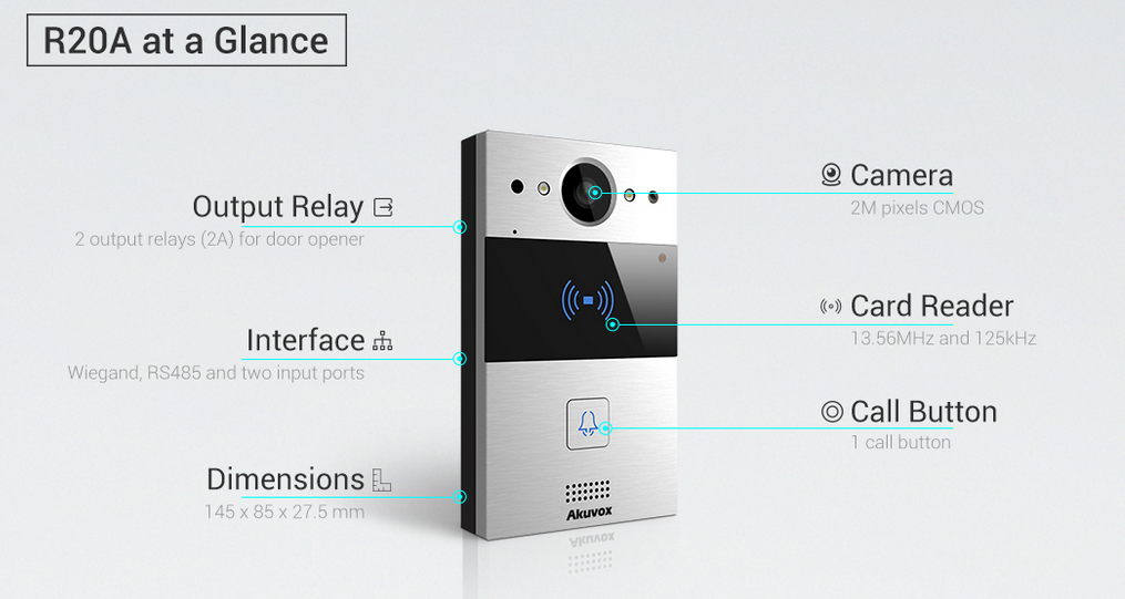 • Integrated RF card reader: 13.56MHz and 125kHz