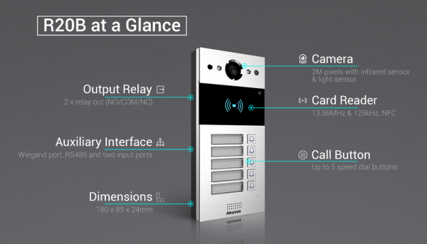 Can extendes with Video Intercom Nametag Module MD6 and MD12 (additional 6 or 12 buttons)